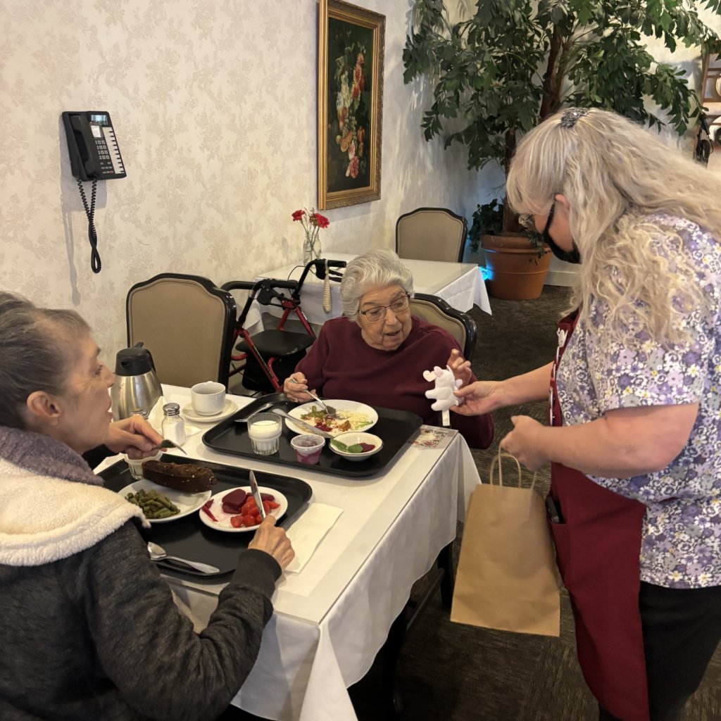 Roy and Jeanette so kindly volunteered to help with the auction for the residents, adding a fun and friendly touch to the event!